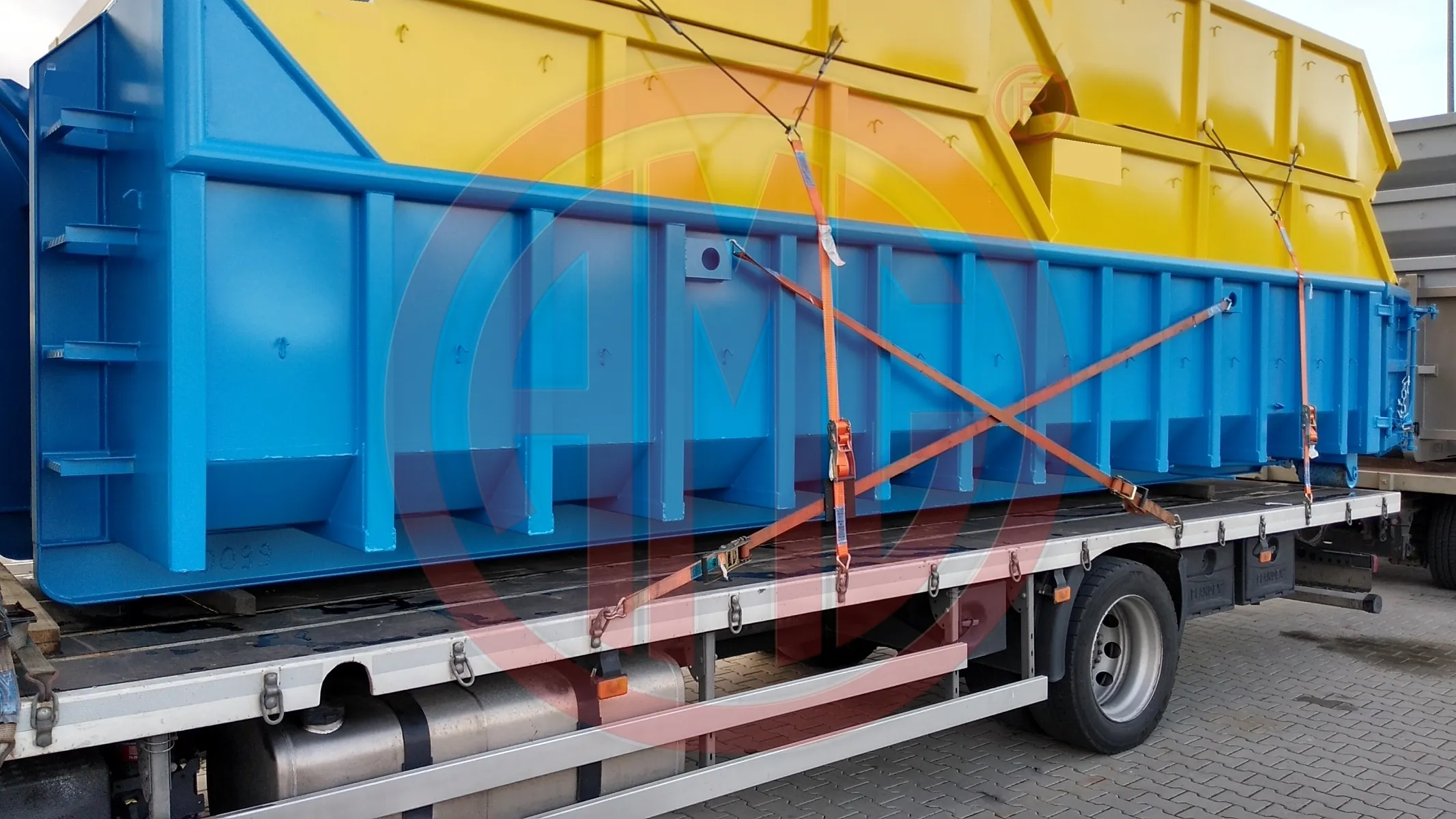- Kontener wyposażony w zaczepy do zakładania plandeki