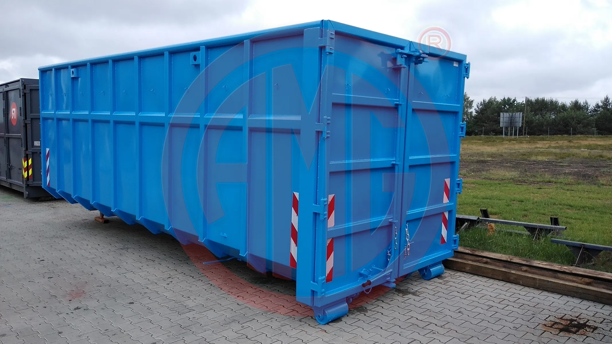- Kontener wyposażony w zaczepy do zakładania plandeki